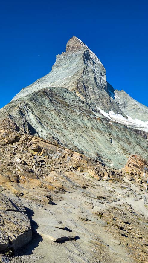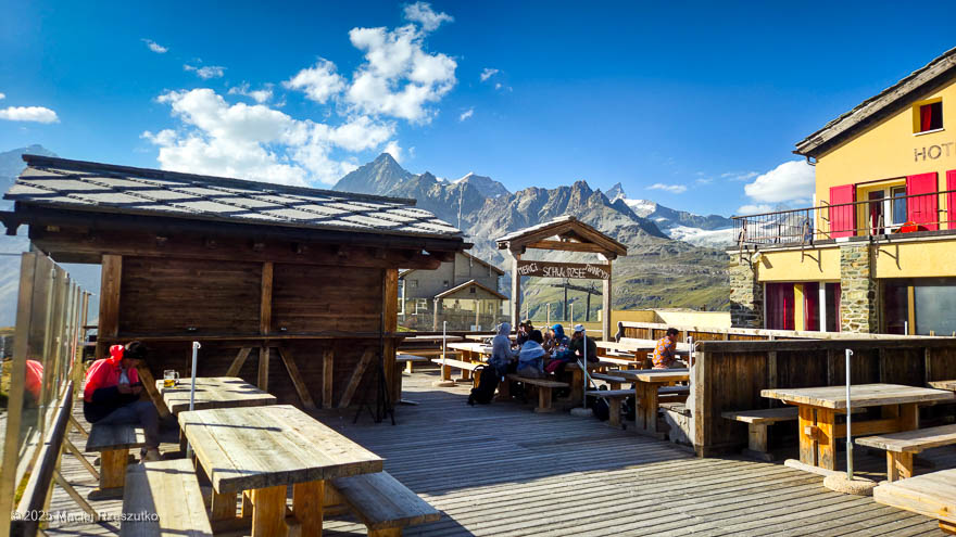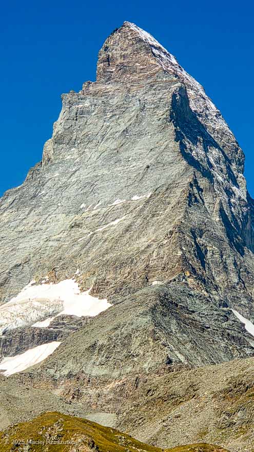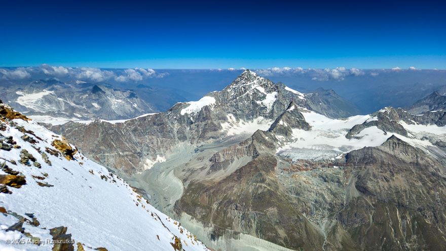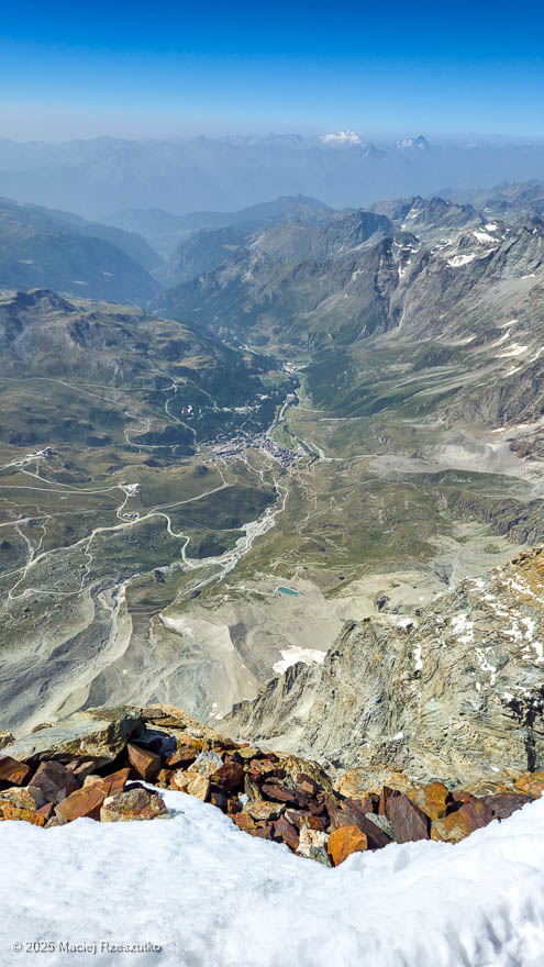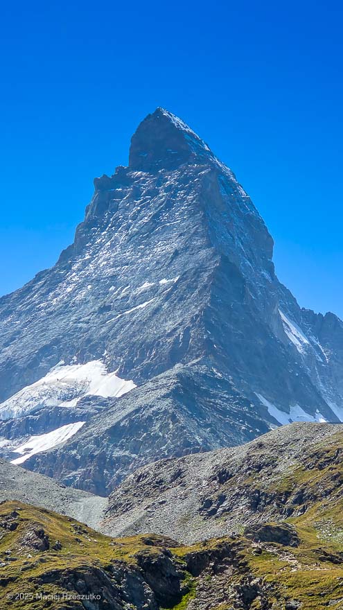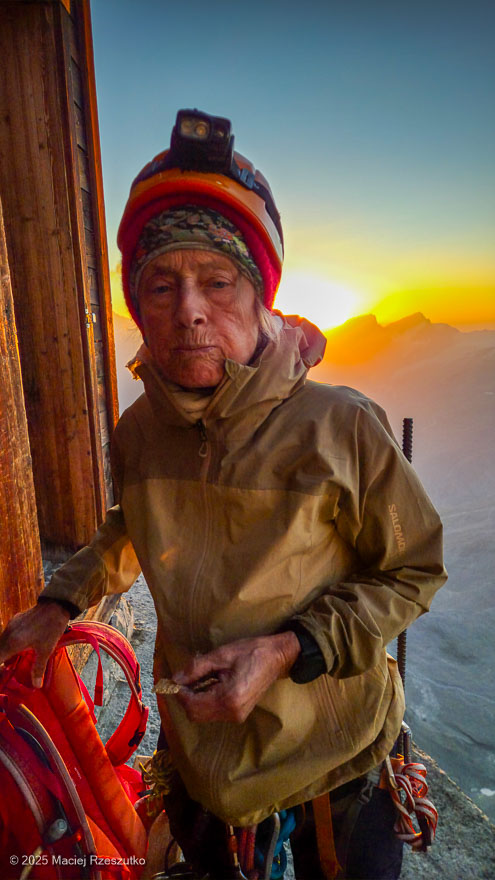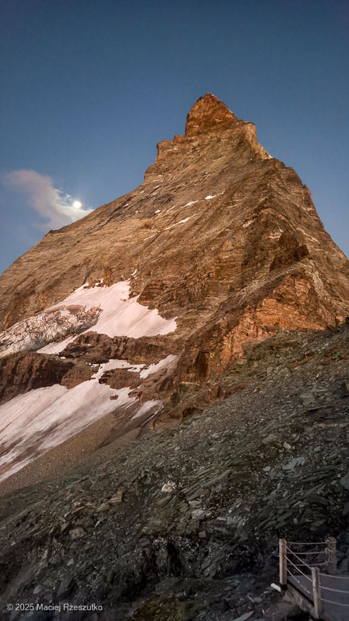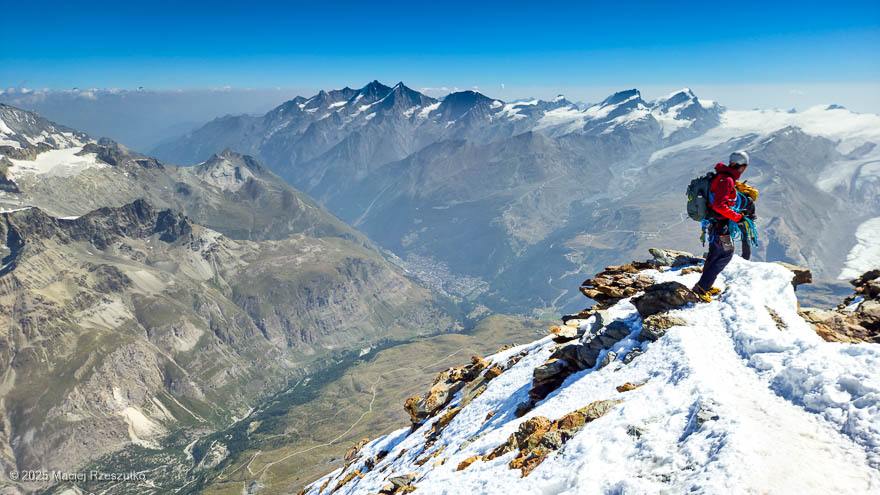 Maria vient de réaliser son rêve 🥳 ! Après un but à 150 mètres du sommet du Cervin en 2023, cette fois-ci ça passe nickel. Plus de places dispos à Hörnlihütte, nous sommes partis de l’hôtel Schwartzsee à 2600m d’altitude. Du coup 1900mD+ au lieu de 1200. C’était un peu long, mais finalement pas tant que ça pour une cordée d’amateurs sexagénaires. J’ai trouvé assez pénibles les dernières cordes fixes. Puis 40 mètres de glace au début du « toit ». Malgré la relative facilité des passages d’escalade, il ne faut surtout pas sous-estimer cette longue course !